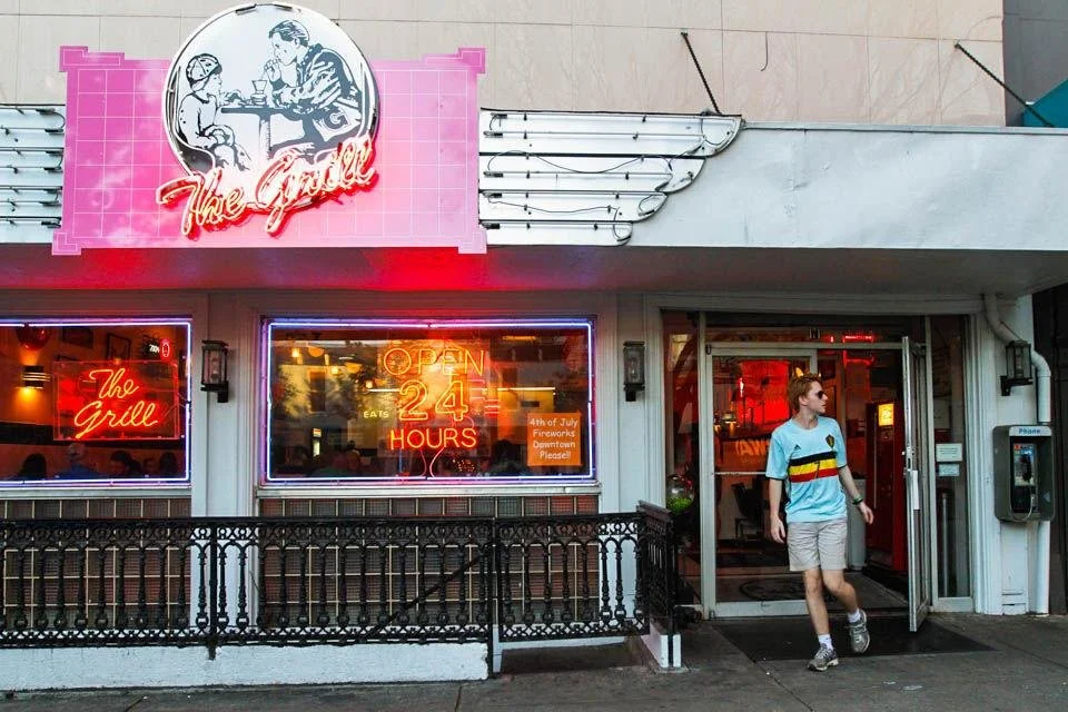 The only remaining pressed tin façade in Athens graces this Victorian-era, eclectic building. It originally had a corner entrance and housed a local print shop.