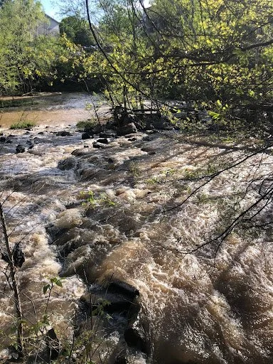 Nearby parking: North Oconee Greenway Park on Oconee Street. Coming from Williams St. turn right onto Oconee St. Take an immediate right into the North Oconee Greenway parking lot. From here, follow the trail till you come to a wooden lookout point, here you can see the shoals.