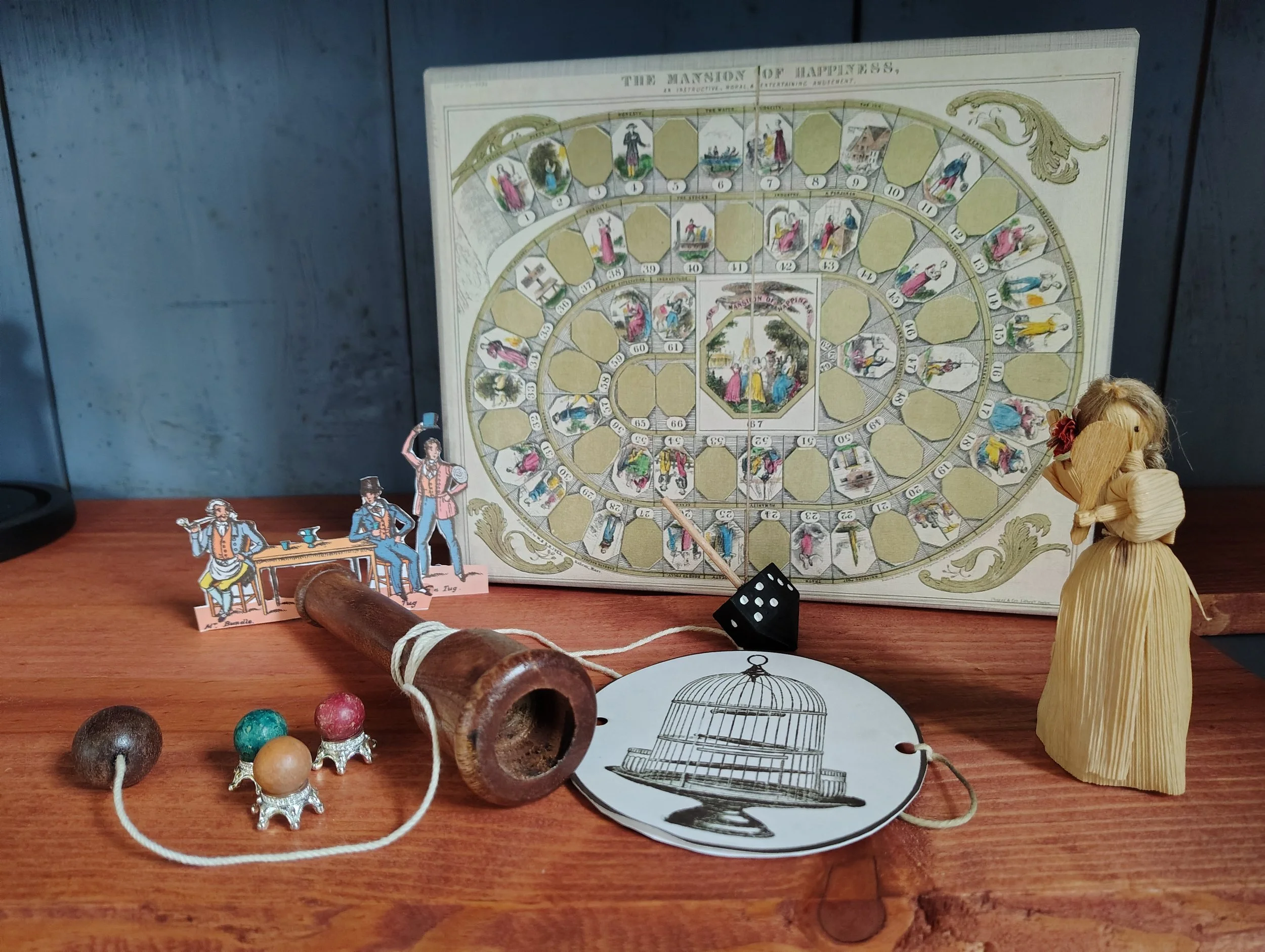 The exhibit “Scope of Play: A Look at Toys Across the Socio-Economic Levels of the American 1820s to the 1840s” is available as a Museum Trunk. The trunk contains most of the toys from the exhibit, plus an exclusive item not found in the original display. In keeping with the exhibit’s tagline, “Toys are for everyone,” the museum trunk can be checked out by schools, home schools, and organizations, anyone who wants to teach and learn about past times of the early 1800s.